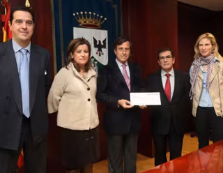 El director de Recursos Humanos de LillyJ España, uan Pedro Herrera, y el gerente de Recursos Humanos de la compañía, Abel Pérez, entregaron hoy al alcalde de Alcobendas (Madrid), Ignacio García de Vinuesa, y a la concejala de Familia, Mónica Sánchez, un total de 30.870 euros para ayudar a las víctimas del terremoto sufrido en Haití el pasado 12 de enero.