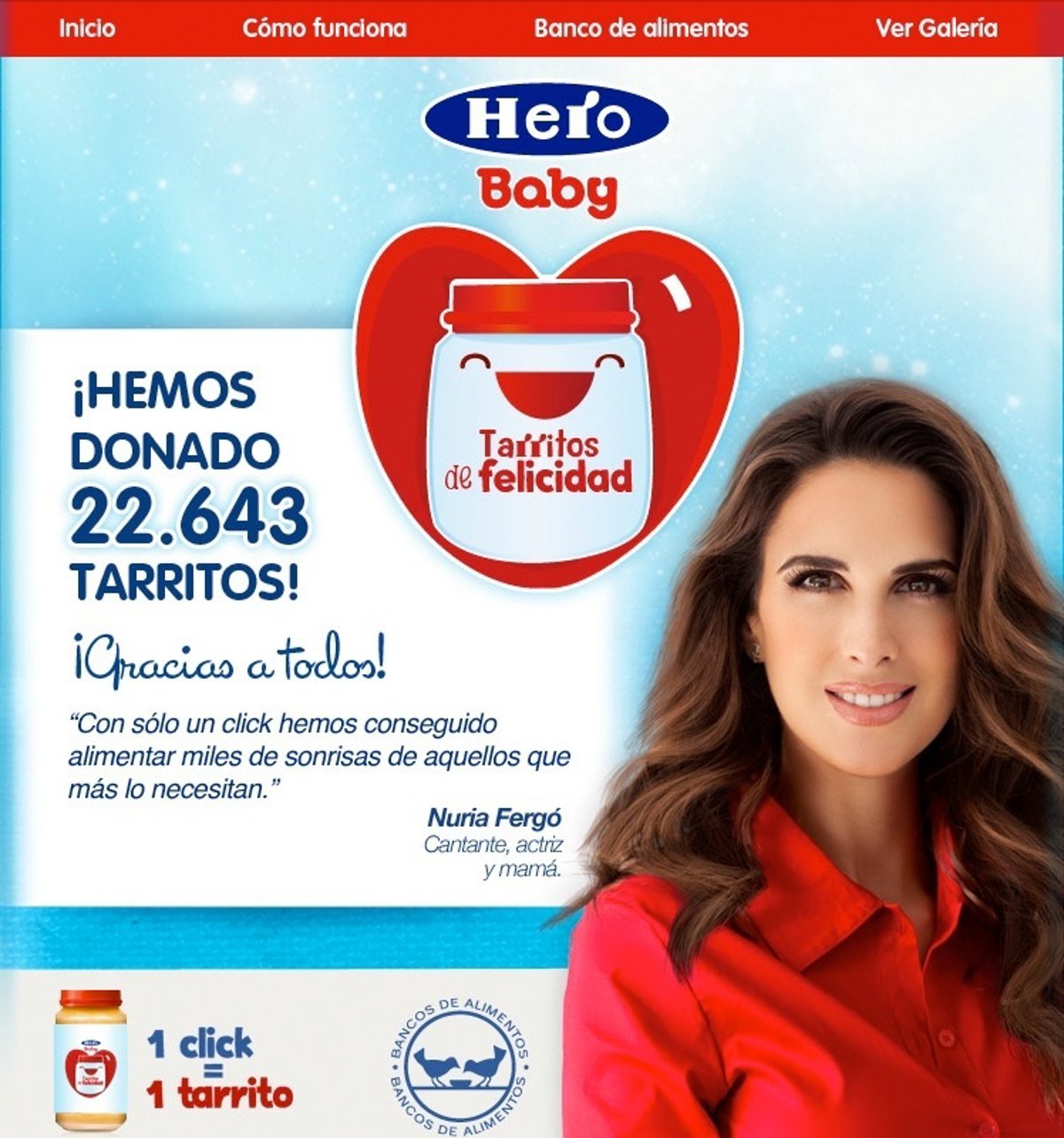 Durante 11 semanas la compañía Hero ha ofertado en su página de Facebook 'Tarritos de Felicidad', que al recibir la aprobación 'me gusta' se han traducido en alimentos para las personas más necesitados. Las personas que han apoyado esta causa podrán observar a través de un vídeo todo el proceso de la entrega de los alimentos.