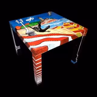 Así, múltiples personalidades españolas plasmaron su creatividad sobre 96 mesas 'Lack', que estuvieron expuestas en las tiendas Ikea de toda España durante las últimas semanas de mayo y salieron a subasta en el portal de comercio electrónico EBay el pasado 6 de junio, a un precio de salida de 4,99 euros cada una.