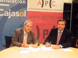 El Instituto de Estudios Cajasol ha suscrito este lunes una línea de colaboración con la Asociación para el Progreso de la Comunicación (APC), mediante la firma de un convenio entre el director general de la escuela de negocios, Javier Blanco, y el presidente de la APC, Ricardo Ríos.
