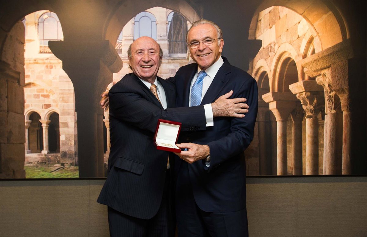 El presidente de la Fundación Bancaria "la Caixa", Isidro Fainé, ha recibido la Medalla de Oro de la Fundación Santa María la Real de manos del presidente de su patronato, el arquitecto y dibujante Jose María Pérez, Peridis, en reconocimiento al compromiso de la Obra Social "la Caixa", así como al apoyo y colaboración que desde hace tiempo mantienen ambas instituciones.