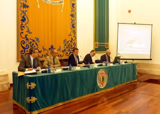 El seminario 'Reforma bancaria, créditos a Pymes y responsabilidad social corporativa' cuenta con la participación de casi 130 alumnos y está dirigido por los profesores de la UCLM Jesús Fernando Santos y Pedro Jiménez, director este último también de la Cátedra de Responsabilidad Social Corporativa-Banco Santander. La inauguración de la actividad ha contado con la presencia, además del rector y del responsable de la Cátedra, del director de Convenios y Proyectos Corporativos del Banco Santander, José Antonio Cristóbal; y del decano de la Facultad de Derecho y Ciencias Sociales de Ciudad Real, Juan Ramón de Páramo.