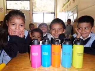 Tanto las pulseras de colores (hechas en México) como las cantimploras llevan mensajes de agradecimiento o de presentación de algunos de los 15.000 niños que se benefician de los programas de la fundación en Guatemala, México, El Salvador y Argentina a través de becas de estudios y de la inversión y mejora de los colegios.