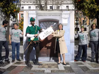 "Esta flecha simboliza nuestra convicción de que la 'Tasa Robin Hood', que gravaría tan sólo un 0,05 por ciento las transacciones financieras, supondría un cambio decisivo en la reducción de las diferencias sociales, así como en la lucha contra la pobreza y los efectos del cambio climático", ha transmitido a la cónsul el portavoz de la Alianza 'Tasa Robin Hood' en Sevilla, Valentín Vilanova, añadiendo que "estamos firmemente convencidos de que ha llegado el momento de hacer realidad esta propuesta".