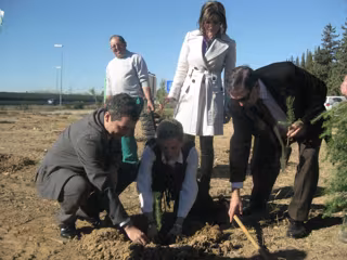 El consejero de Cultura, Pedro Alberto Cruz, y la concejala de Medio Ambiente y Calidad Urbana, Adela Martínez-Cachá, han asistido a la plantación de estos 192 pinos carrascos plantados, que compensará durante su primer año de vida las emisiones del festival.