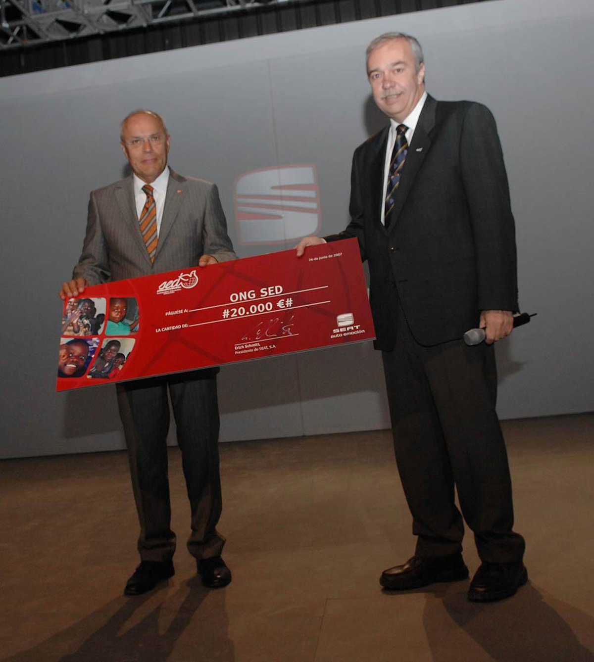 Durante la reciente presentación del nuevo modelo todoterreno de Seta, el 'Altea freetrack', en Santiago de Compostela, el presidente de la compañía, Erich Schmitt, hizo entrega del cheque al director de esta ONG, Antonio Tejedor, para poner en marcha un aula de dibujo técnico para jóvenes en Kalulushi, una región zambiana desfavorecida que cuenta con una tasa de paro juvenil del 80%.