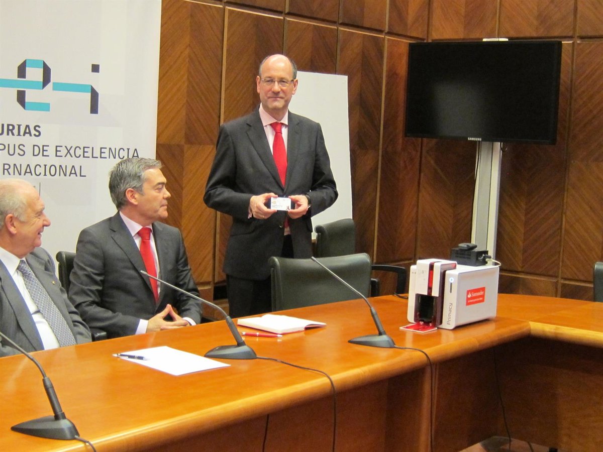 Los alumnos de la Universidad de Oviedo podrán disponer de su carné universitario en menos de dos minutos, gracias a una tecnología impulsada por el Banco Santander, que permite emitir la denominada 'Tarjeta Universitaria Inteligente' de forma casi instantánea.