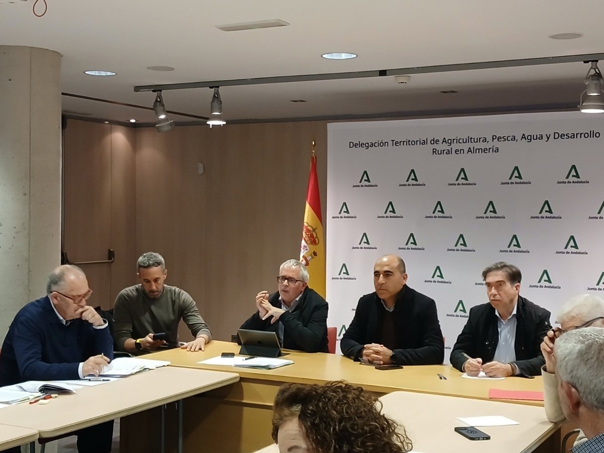 El delegado territorial de Agricultura, Pesca, Agua y Desarrollo Rural de la Junta en Almería, Antonio Mena, acompañado por parte del equipo técnico de la Delegación Territorial, ha mantenido un encuentro con empresas del sector para informar sobre el contenido de esta convocatoria.