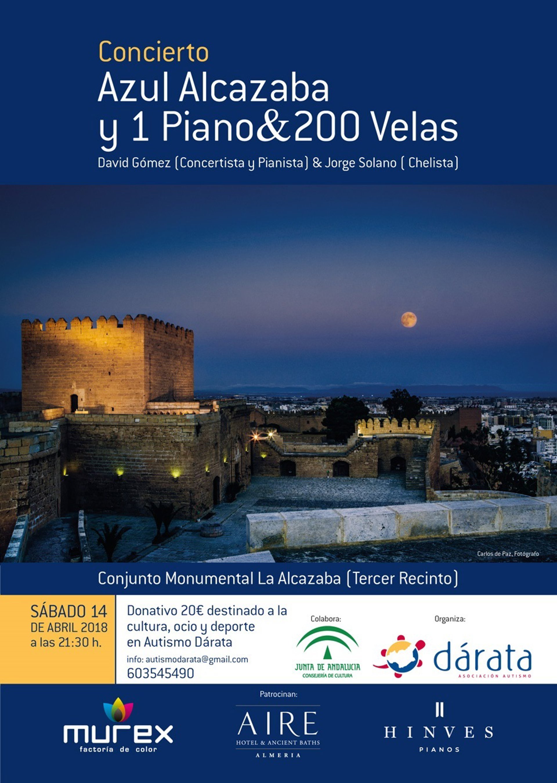 El concierto benéfico contará con la presencia del pianista David Gómez, acompañado al chelo por Jorge Solano y se celebrará en el tercer recinto de la Alcazaba a las 21,30 horas. El precio de las entradas es de 20 euros y las reservas se podrán hacer vía whatsapp al número 603545490.
