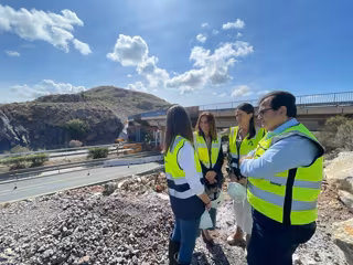 La consejera de Fomento, Articulación del Territorio y Vivienda, Rocío Díaz, ha realizado una visita técnica a las obras del tramo que une la Autovía del Almanzora con la Autovía del Mediterráneo (A-7) en Almería, donde ha comprobado la evolución de los trabajos, centrados en la construcción de los ramales de conexión del enlace entre ambas autovías y la finalización de la estructura de 83 metros de longitud sobre la A-7, que está a falta de la pavimentación y la señalización.