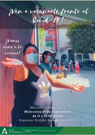 Cartel para promover la vacunación contra el covid-19 en la Plaza Pavía de Almería. - JUNTA DE ANDALUCÍA