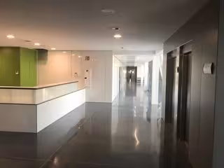 Igualmente se podrá acceder desde la rampa, por donde pasan los vehículos que salen del Hospital Universitario Torrecárdenas, por ese mismo pasillo central siendo la puerta de consultas externas la primera a la derecha.