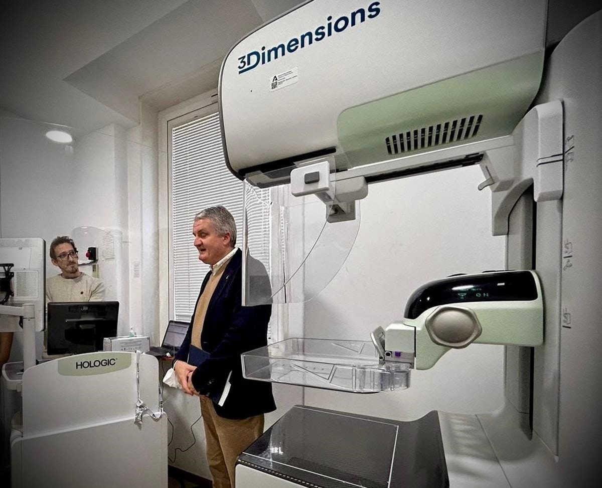 El delegado territorial de Salud y Consumo de la Junta en Almería, Juan de la Cruz Belmonte, junto a un mamógrafo del Programa de Detección Precoz del Cáncer de Mama. - JUNTA DE ANDALUCÍA