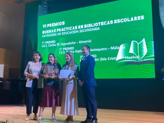 De este modo, el IES Carlos III de Aguadulce ha recibido el primer premio, dotado con cinco mil euros y trofeo, por haber expandido su biblioteca al espacio virtual y por crear los Bibliomakers, un concepto que integra materias, departamentos, espacios, planes y programas, centros de la localidad y formación del profesorado como recurso acelerador de la innovación en el centro.