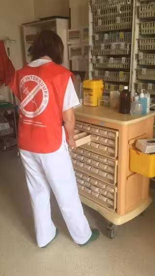 Con el uso de los chalecos se quiere identificar claramente a quien está realizando la administración de medicación y mostrar que ese profesional solo debe ser interrumpido en situaciones de emergencia que puedan producirse en el área de Hospitalización.