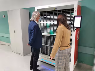 Esta nueva tecnología mantiene el estado en tiempo real de todas las lentes intraoculares mantenidas dentro de su inventario, detectando automáticamente cuándo se ha retirado o introducido una caja. Todas las cajas actuales de este tipo de lentes caben en el armario. Pueden colocarse en cualquiera de las 324 ranuras de las que dispone.