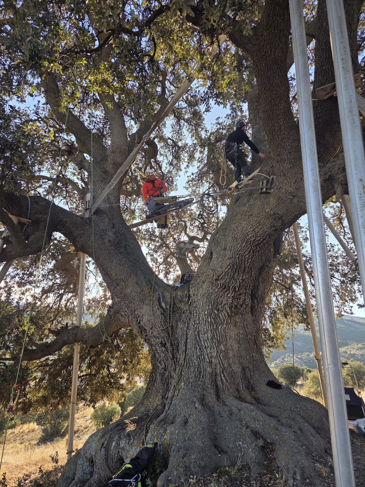 Tras el proceso de evaluación y diagnóstico realizado el pasado mes de octubre, la Consejería de Sostenibilidad y Medio Ambiente de la Junta de Andalucía ha empezado a ejecutar las medidas propuestas por el experto arboricultor para reforzar la estructura del Monumento Natural de la Encina de la Peana de Serón.