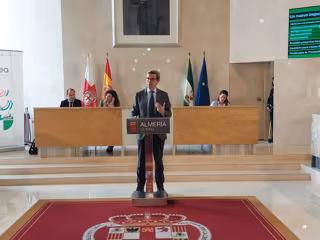El consejero andaluz de Industria, Energía y Minas, Jorge Paradela, durante su intervención en el Ayuntamiento de Almería. - JUNTA DE ANDALUCÍA
