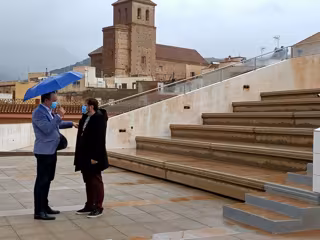 Delgado ha podido comprobar 'in situ' los trabajos realizados en la terraza del Centro de Participación Activa de Abrucena, donde se ha procedido a mejorar la seguridad de sus muros exteriores en torno al graderío existente para la realización de actividades culturales y lúdicas, ya que además se dotará al espacio con un parque de juegos infantiles.