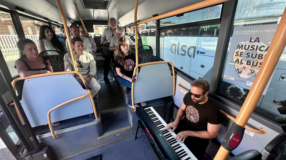 La iniciativa ha llevado microconciertos a la línea M-102 --Almería-Huércal de Almería-Viator-Pechina--, donde los músicos han acompañado a los viajeros durante toda la mañana.
