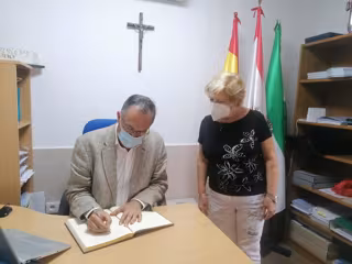 El delegado territorial de Turismo, Vicente García Egea, firma el libro de honor del Ayuntamiento de Laroya. - JUNTA DE ANDALUCÍA