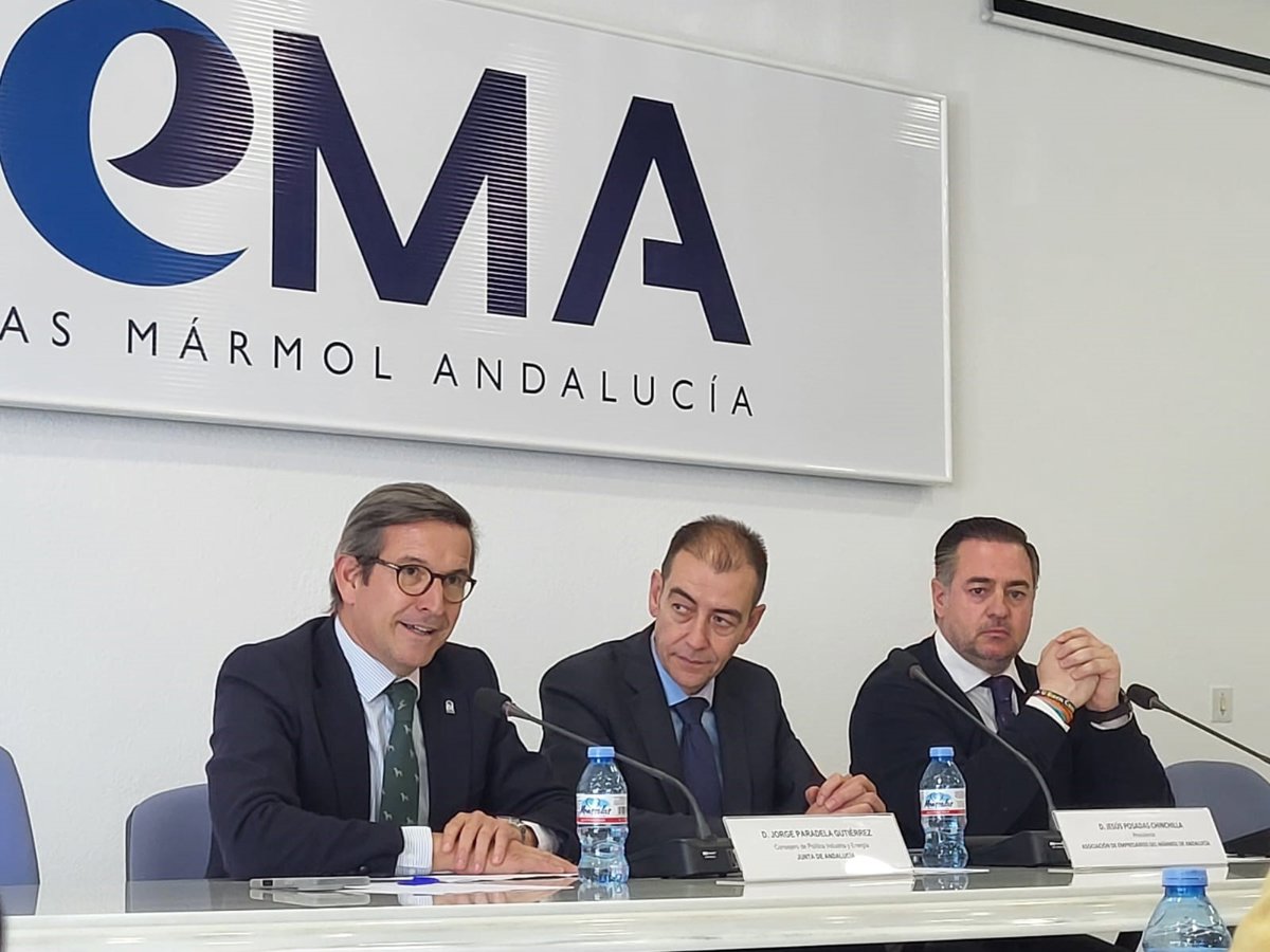 El consejero ha recordado otras actuaciones de apoyo al sector de la piedra y el mármol promovidas por la Junta, como la puesta en marcha de una Oficina Técnica Colaboradora junto al Ayuntamiento de Macael y la Asociación de Empresarios del Mármol de Andalucía.