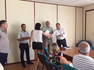 El delegado territorial de Agricultura, José Manuel Ortiz Bono, ha entregado este miércoles 19 resoluciones de ayudas para reconstitución del potencial productivo agrario de los invernaderos que quedaron dañados en noviembre de 2014 en la comarca del poniente almeriense.