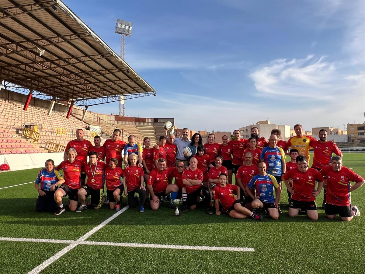 El consejero de Agricultura, Pesca, Agua y Desarrollo Rural, Ramón Fernández Pacheco, y la alcaldesa de Almería, María del Mar Vázquez, junto a los integrantes del equipo Unión Rugby Almería Clan Mixed Ability (URA Clan). - JUNTA DE ANDALUCÍA