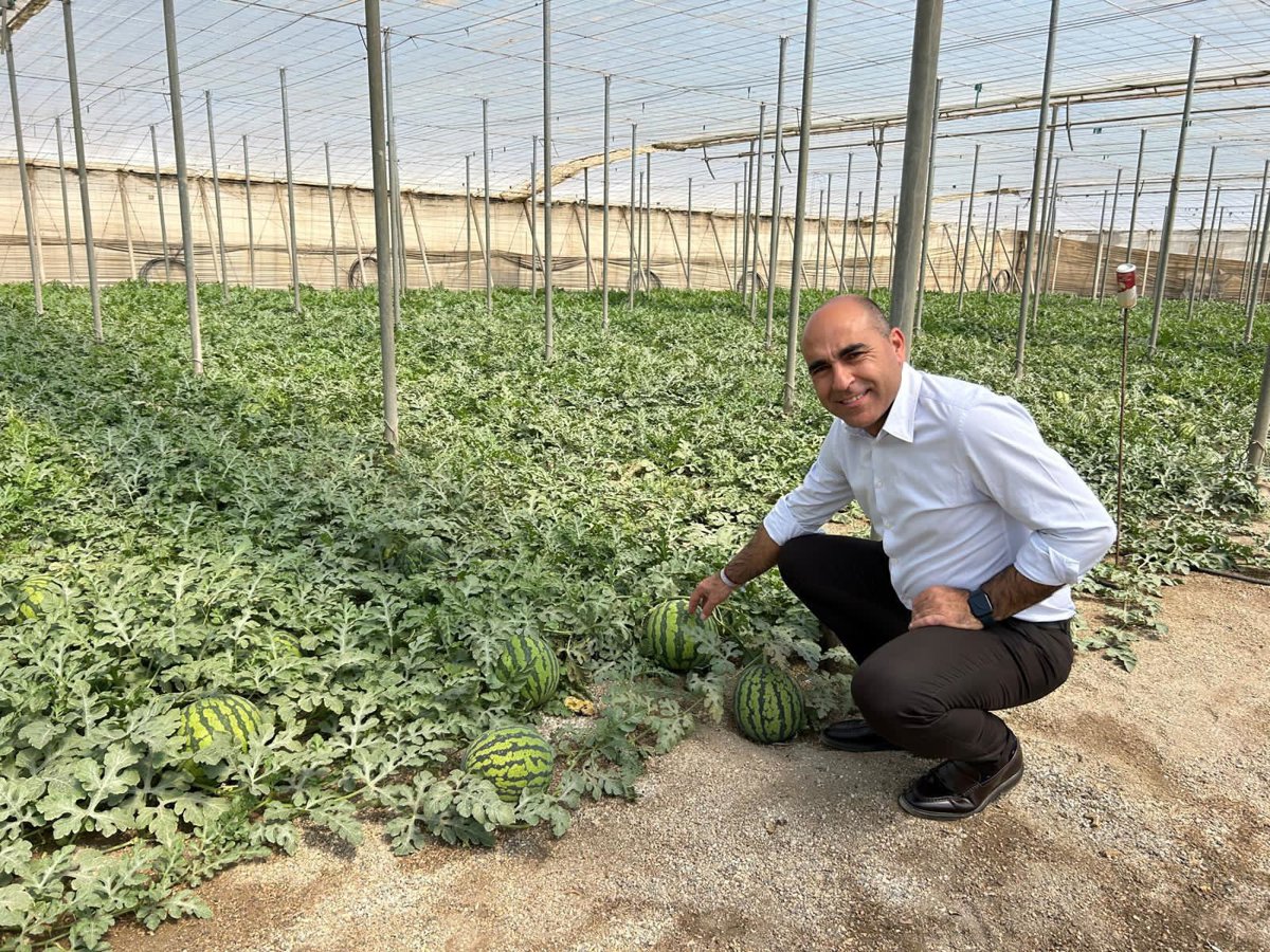 El delegado territorial Antonio Mena en un invernadero de sandías - JUNTA