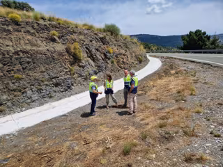 La delegada de Fomento, Articulación del Territorio y Vivienda de la Junta de Andalucía en Almería, Dolores Martínez, ha visitado las inmediaciones del Observatorio de Calar Alto, en Gérgal, para comprobar el avance de los trabajos que se ejecutan en la carretera A-1178 con el objetivo de introducir fibra óptica y mejorar el servicio en esta instalación científica.