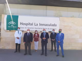 El consejero de Salud y Familias de la Junta de Andalucía, Jesús Aguirre, ha expuesto a los profesionales sanitarios del Hospital La Inmaculada de Huércal-Overa en Almería, las medidas recogidas en el Decreto Ley 22/2020 sobre la contratación de profesionales en los puestos de difícil cobertura cuya implantación está pendiente de negociación en mesa sectorial pero que se prevé aplicar en el primer trimestre de 2021.