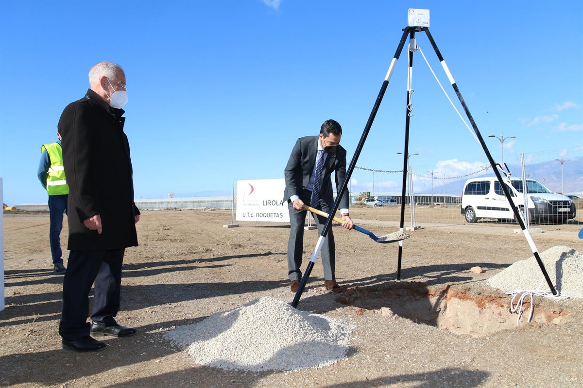 El presidente de la Junta de Andalucía, Juanma Moreno, ha participado este miércoles en el arranque de las obras del futuro centro hospitalario de alta resolución de Roquetas de Mar (Almería) con la colocación de la primera piedra en un acto participado por varias autoridades a las que el presidente ha reconocido que el "anhelo" del municipio de contar con una instalación de estas características era "justo, necesario, sensato" para la localidad y la comarca del Poniente.