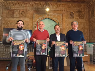 El delegado de Cultura, Turismo y Deporte de la Junta en Almería, Alfredo Valdivia, acompañado por el alcalde de Pechina, Juan Manuel López, y el presidente de la Federación de Agrupaciones Carnavalescas de Almería (Fealca), Nicolás Castillo, ha presentado el cartel de la VI Muestra de Carnaval Tradicional de Almería en la que van a participar agrupaciones carnavalescas de cinco localidades de la provincia.