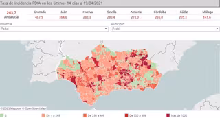 Según los últimos datos actualizados por la Consejería de Salud, consultados por Europa Press, los 118 municipios por encima de la tasa de 500 casos Covid en las últimas dos semanas se reparten por las ocho provincias, ya que Granada registra 44 localidades, Jaén 24, Sevilla 15, Cádiz diez, Huelva siete, Almería y Córdoba seis y Málaga cuatro.