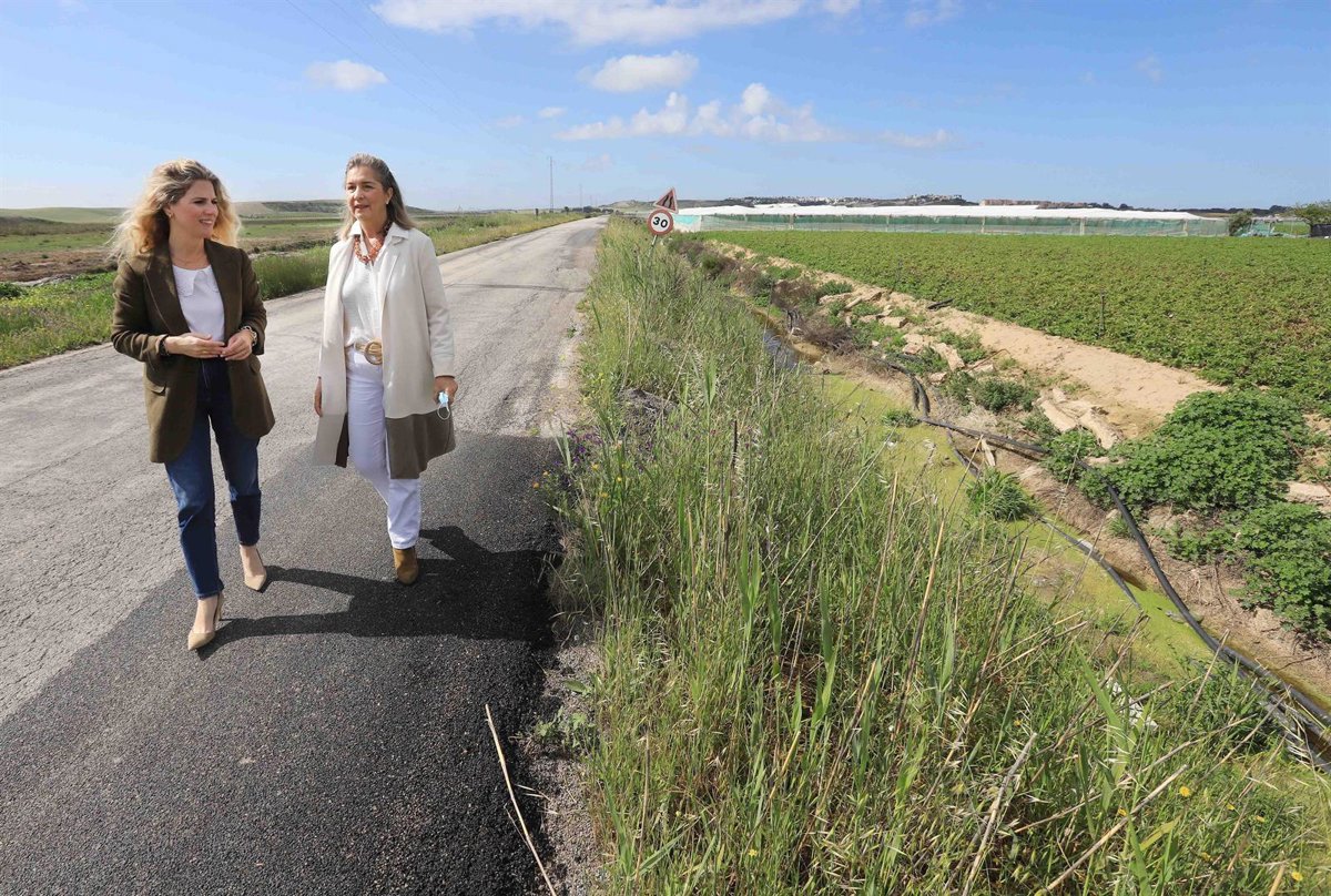 La delegada del Gobierno andaluz en Cádiz, Ana Mestre, junto a la delegada de Agricultura, Ganadería y Pesca de la Junta de Andalucía, Ana Bertón, en el camino del Práctico. - JUNTA DE ANDALUCÍA