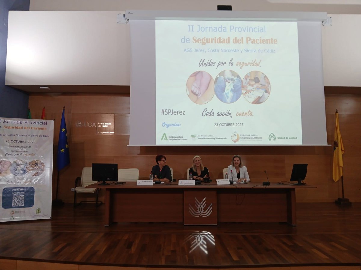 La II Jornada Provincial de Seguridad del Paciente reafirma el compromiso del Área de Gestión Sanitaria de Jerez, Costa Noroeste y Sierra de Cádiz con la mejora continua de la atención y con el propósito común de ofrecer una atención "cada día más segura" para todos los ciudadanos.