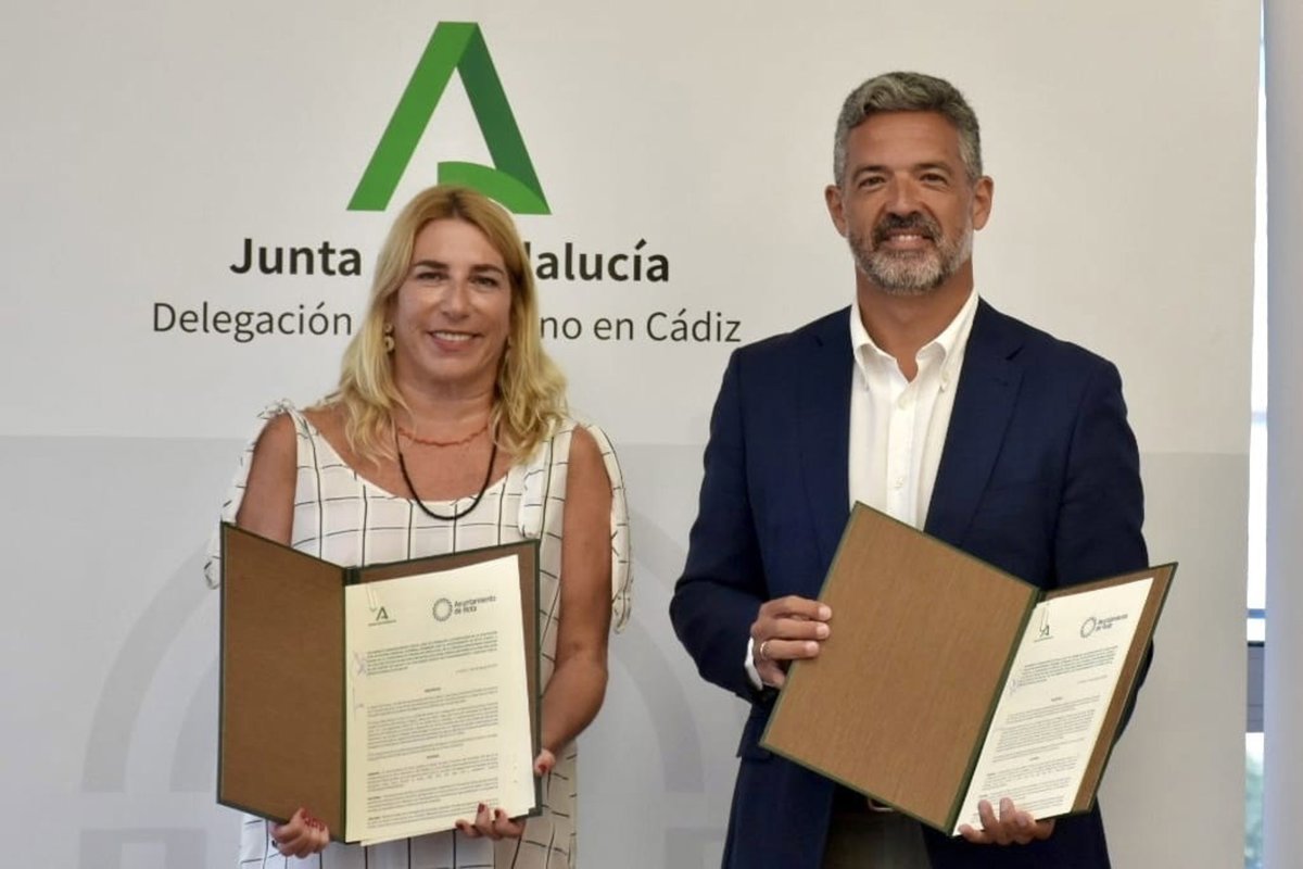 La delegada territorial de Economía, Hacienda, Fondos Europeos y de Industria, Energía y Minas de la Junta de Andalucía en Cádiz, Inmaculada Olivero, y el alcalde de Rota, Javier Ruiz Arana, han firmado este miércoles un acuerdo de cesión de una parcela del Ayuntamiento a la Junta para la construcción y puesta en funcionamiento de un nuevo centro de salud en dicha localidad.