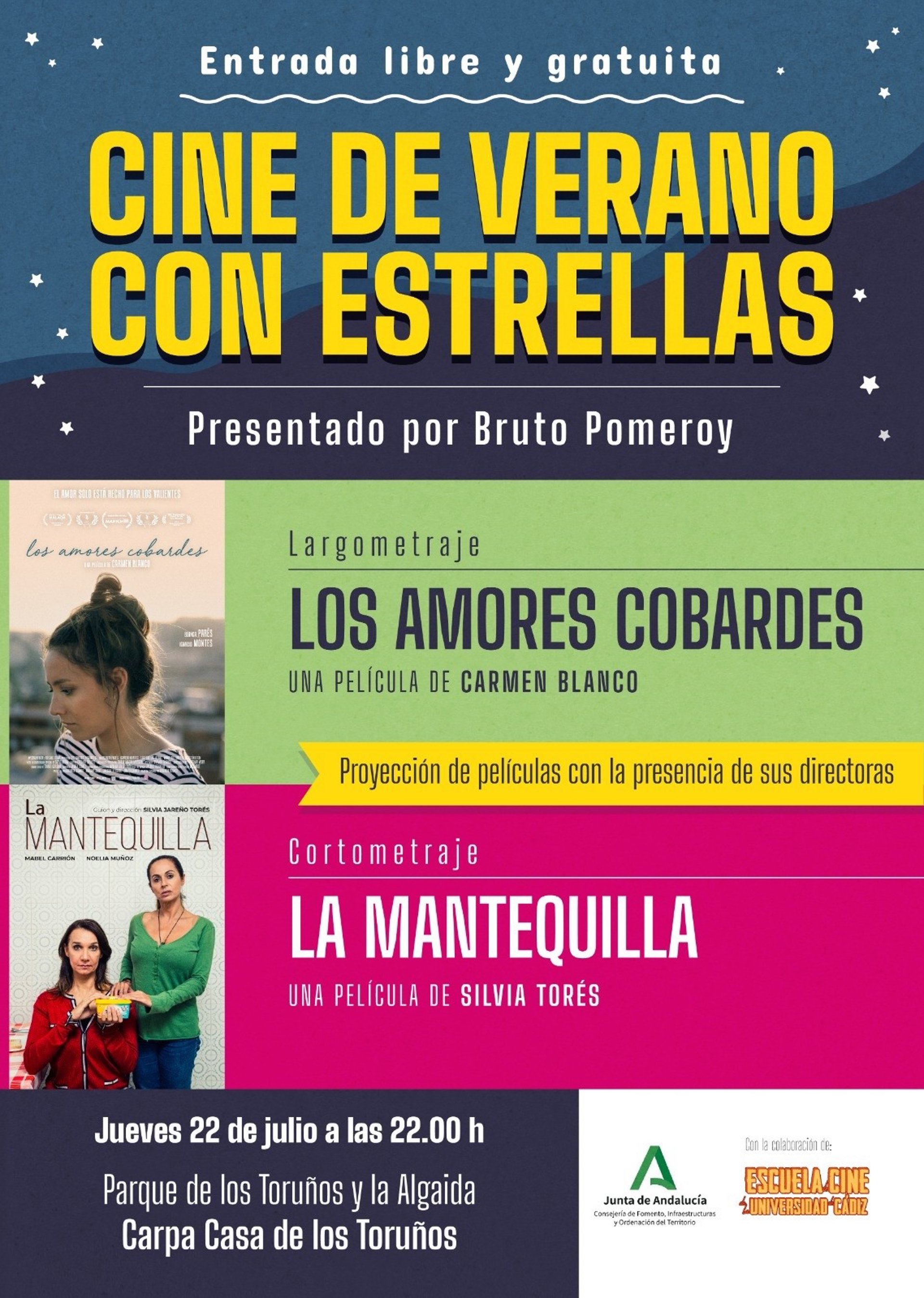 No obstante, el ciclo Cine de Verano con Estrellas está organizado por el propio parque metropolitano, con la colaboración de la Escuela de Cine de la Universidad de Cádiz. Arrancará el 22 de julio, con la proyección del cortometraje La Mantequilla, dirigido por Silvia Torres, al término del cual se verá la película titulada Los amores cobardes, dirigida por la gaditana Carmen Blanco.