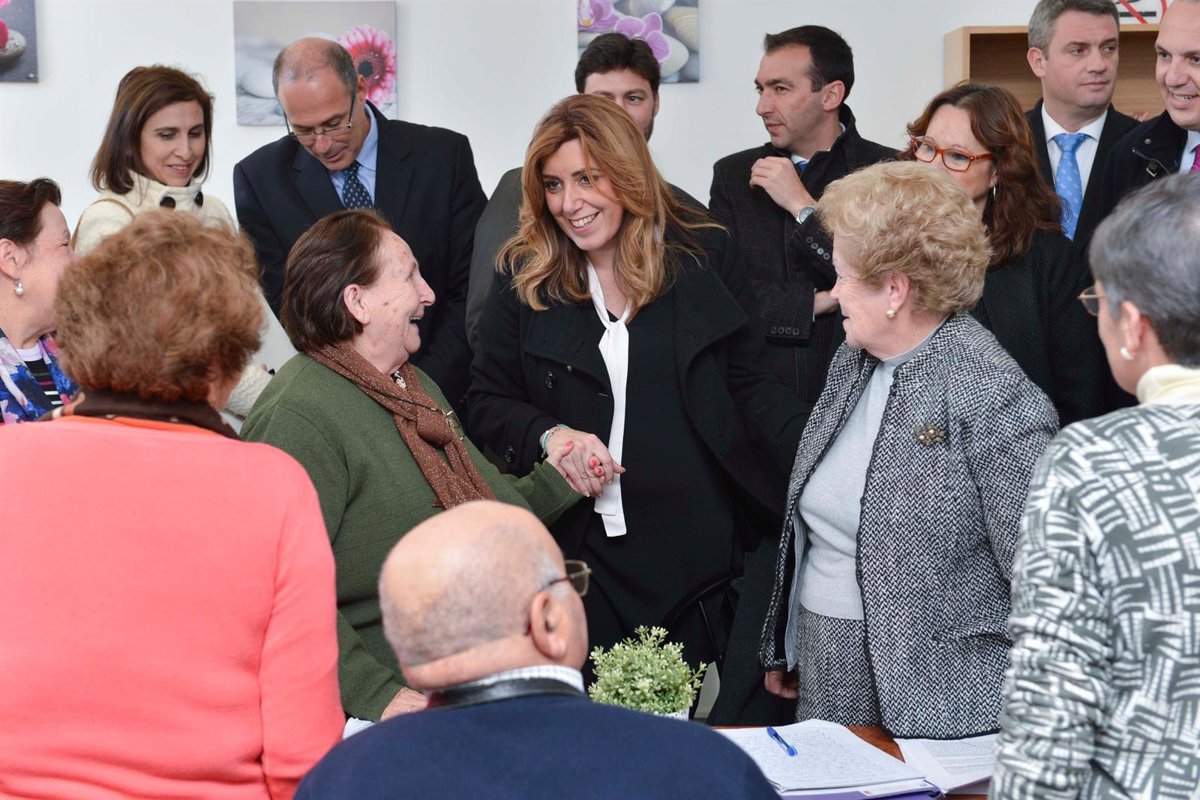 La presidenta de la Junta de Andalucía, Susana Díaz, ha visitado este viernes los talleres de memoria, atención y percepción para personas mayores en San Roque (Cádiz), donde ha subrayado la necesidad de "proteger este tipo de iniciativas para fomentar el envejecimiento activo".