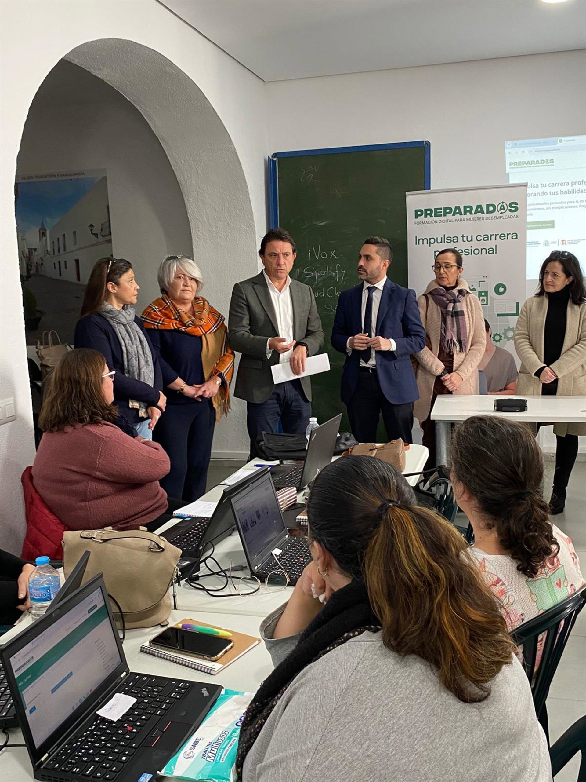 El delegado territorial de Empleo, Empresa y Trabajo Autónomo de la Junta en Cádiz, Daniel Sánchez Román, ha visitado en los municipios de Barbate y Vejer a las alumnas del programa 'Preparadas', una iniciativa de la Consejería de Empleo, Empresa y Trabajo Autónomo destinada a la formación digital de mujeres del ámbito rural, que en estas dos localidades ha formado a 72 mujeres.