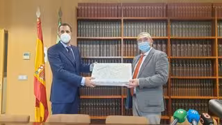 El delegado de Educación y Deporte de la Junta en Cádiz, Miguel Andréu, y el responsable de la central de Ciclo Combinado de Endesa en San Roque (Cádiz), Jose Antonio Liaño, han hecho entrega de los 777 ordenadores portátiles que Endesa ha donado a la provincia con el fin de hacer frente a la brecha digital que la pandemia mundial ha puesto de manifiesto.