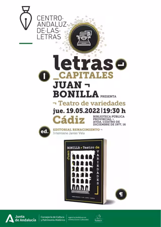 Cartel de la presentación del nuevo libro de Juan Bonilla. - JUNTA DE ANDALUCÍA
