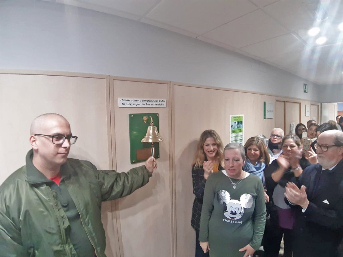 Un paciente que ha finalizado su tratamiento en oncología tocando la Campana de los Sueños - JUNTA DE ANDALUCÍA