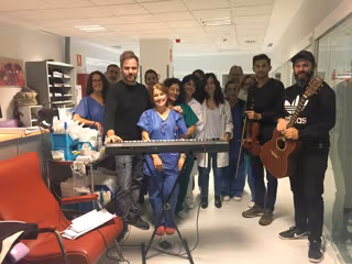 En esta línea, esta semana los pacientes de la UCI recibieron la visita de los integrantes de 'Flecha Valona', un grupo musical jerezano, que ofreció una actuación musical coincidiendo con la visita de familiares a cada paciente, para que pudieran participar juntos de tan emotivo acto. Junto a ellos, estuvieron todos los profesionales de la unidad.