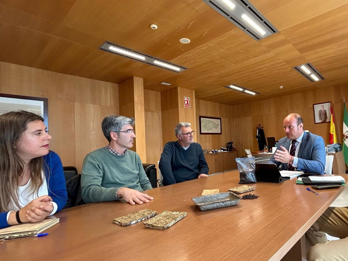 El delegado territorial de Sostenibilidad y Medio Ambiente de la Junta de Andalucía en Cádiz, Óscar Curtido, en una reunión con representantes de la start-up andaluza Futuralga - JUNTA DE ANDALUCÍA