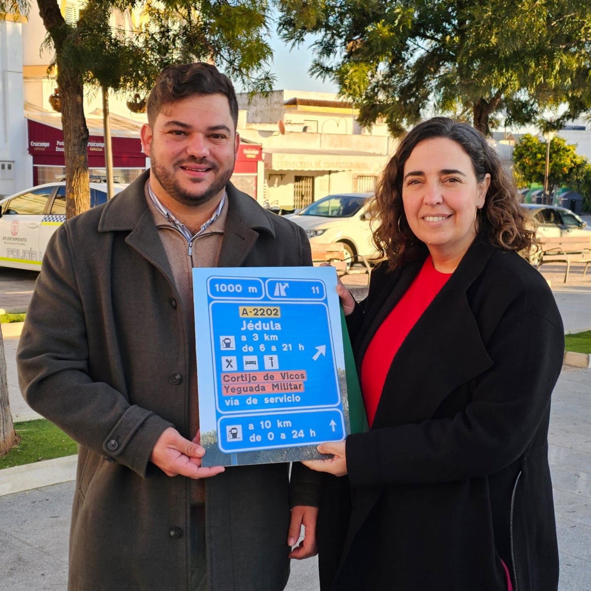 La delegada territorial de Fomento, Articulación del Territorio y Vivienda de la Junta en Cádiz, Carmen Sánchez, y el alcalde de Arcos de la Frontera, Miguel Rodríguez, han destacado la nueva señalética instalada por la Consejería que sitúa a Jédula en la autovía A-382. Ambos han valorado, la mejora en visibilidad y seguridad vial que supone esta cartelería en la zona.