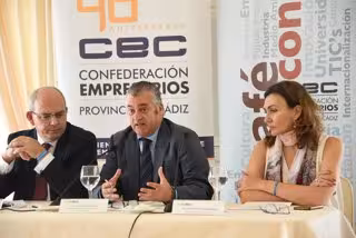 Tras participar en 'Café con', un encuentro organizado por la Confederación de Empresarios de Cádiz (CEC) donde se dialoga con los asociados de este organismo empresarial sobre un tema de actualidad, el máximo responsable de Empleo, Empresa y Comercio ha querido abordar "el modelo de desarrollo económico para la comunidad autónoma, y en concreto para el Campo de Gibraltar, que el Gobierno andaluz ha diseñado a través de sus distintas iniciativas y políticas".