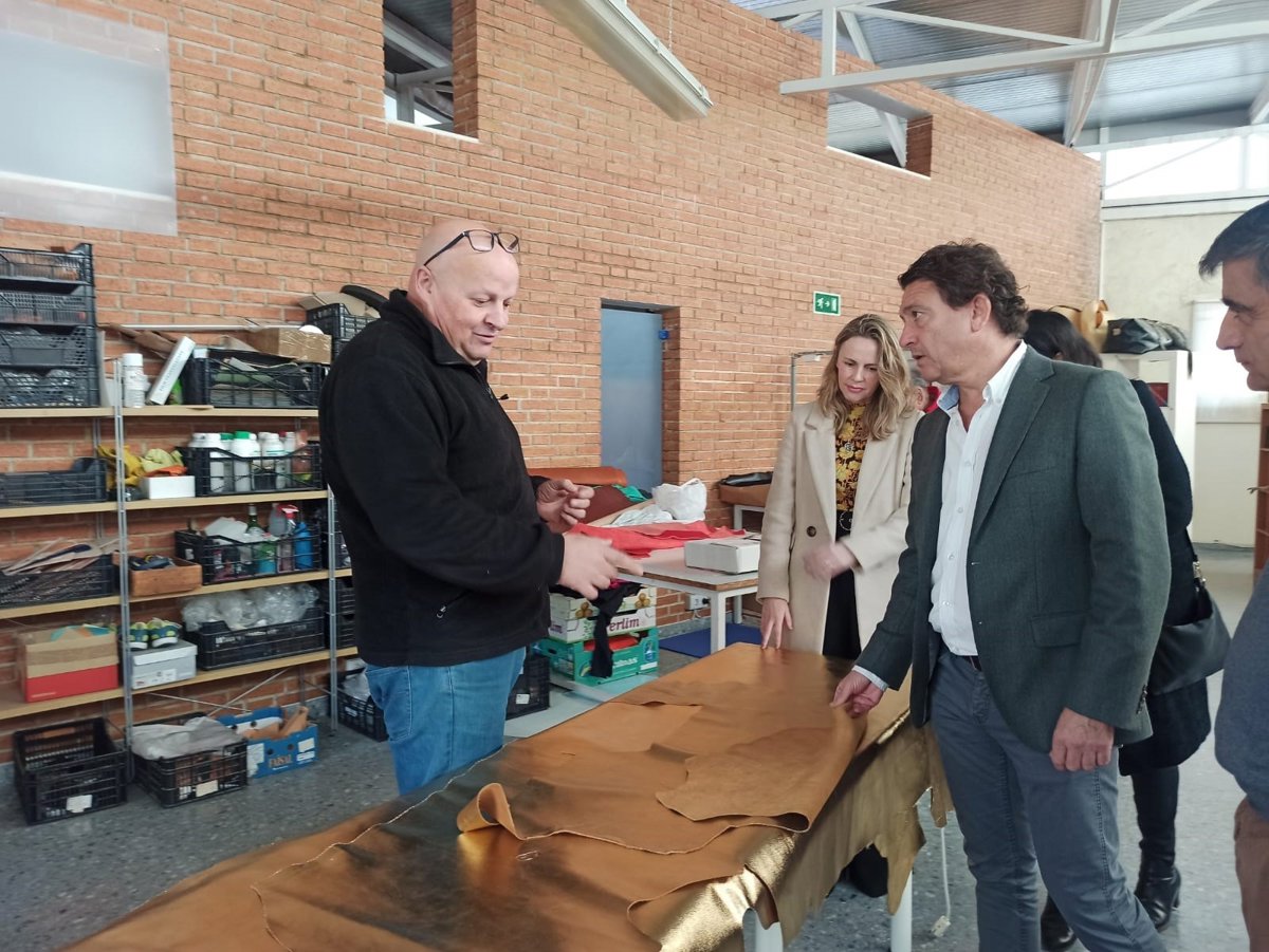 Tras la entrega de resoluciones, Daniel Sánchez, ha visitado empresas artesanas con sede en el municipio pradense dedicadas a la marroquinería, como la Agrupación Local de Empresarios de la Piel -ALEP- y Marsanpiel.