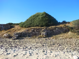 En la zona más alta se encuentra una estructura funeraria tardorromana, sin restos óseos en su interior, fechable entre los siglos V-VII. Puede verse también gran cantidad de material arqueológico mueble, sobre todo cerámico, como el formado por materiales constructivos (tégulas, ímbrices, ladrillos, opus) y recipientes (ánforas, cerámica común, sigilata). El enterramiento está formado por sillares de piedra ostionera y jabaluna y, por su tipología, podría tratarse de un enterramiento tardorromano similar a los existentes en la cercana Baelo Claudia.