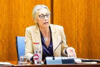 La consejera de Salud y Consumo, Rocío Hernández, en comisión parlamentaria. - JOAQUÍN CORCHERO/PARLAMENTO DE ANDALUCÍA